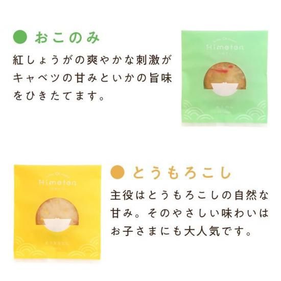 ・えび エネルギー 37kcal たんぱく質 4.1g 脂質 1.0g 炭水化物 3.0g 食塩相当量 0.6g ・おこのみ エネルギー 33kcal たんぱく質 3.3g 脂質 1.0g 炭水化物 2.8g 食塩相当量 0.6g ・とうもろこし エネルギー 37kcal たんぱく質 3.4g 脂質 1.0g 炭水化物 3.6g 食塩相当量 0.5g ・チーズ エネルギー 50kcal たんぱく質 4.3g 脂質 2.3g 炭水化物 2.9g 食塩相当量 0.7g ・紅しょうが エネルギー 37kcal たんぱく質 3.5g 脂質 0.9g 炭水化物 3.7g 食塩相当量 0.8g |
